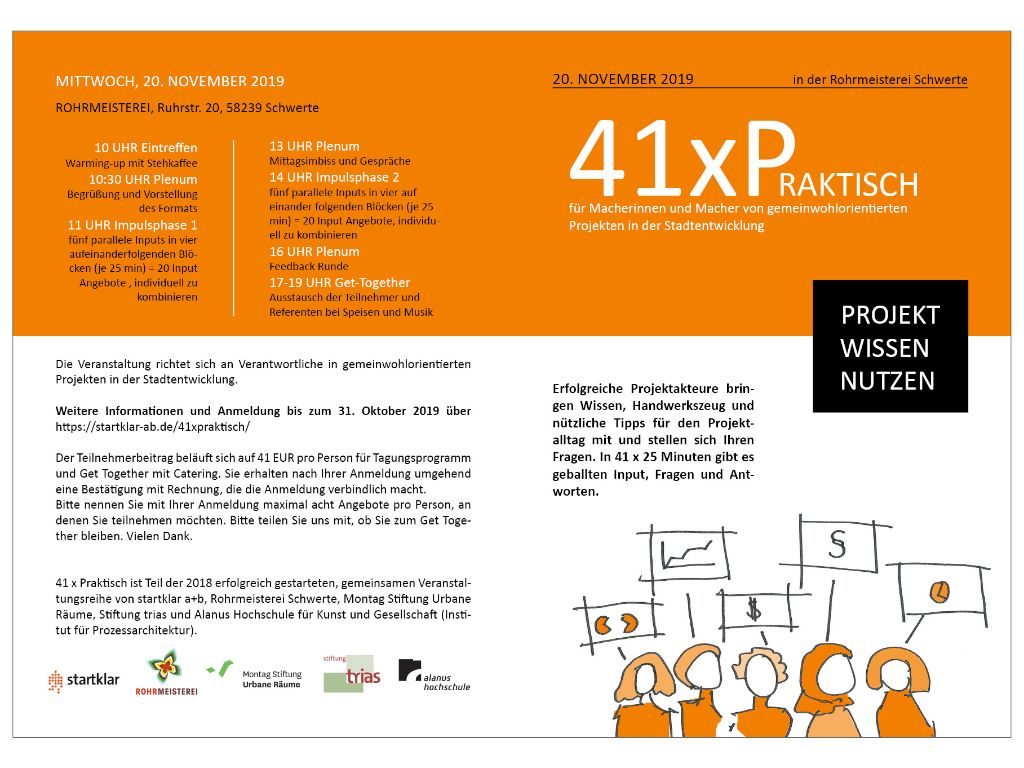 Veranstaltungsflyer: https://startklar-ab.de/wp-content/uploads/2019/09/Einladungsflyer-41xPraktisch.pdf