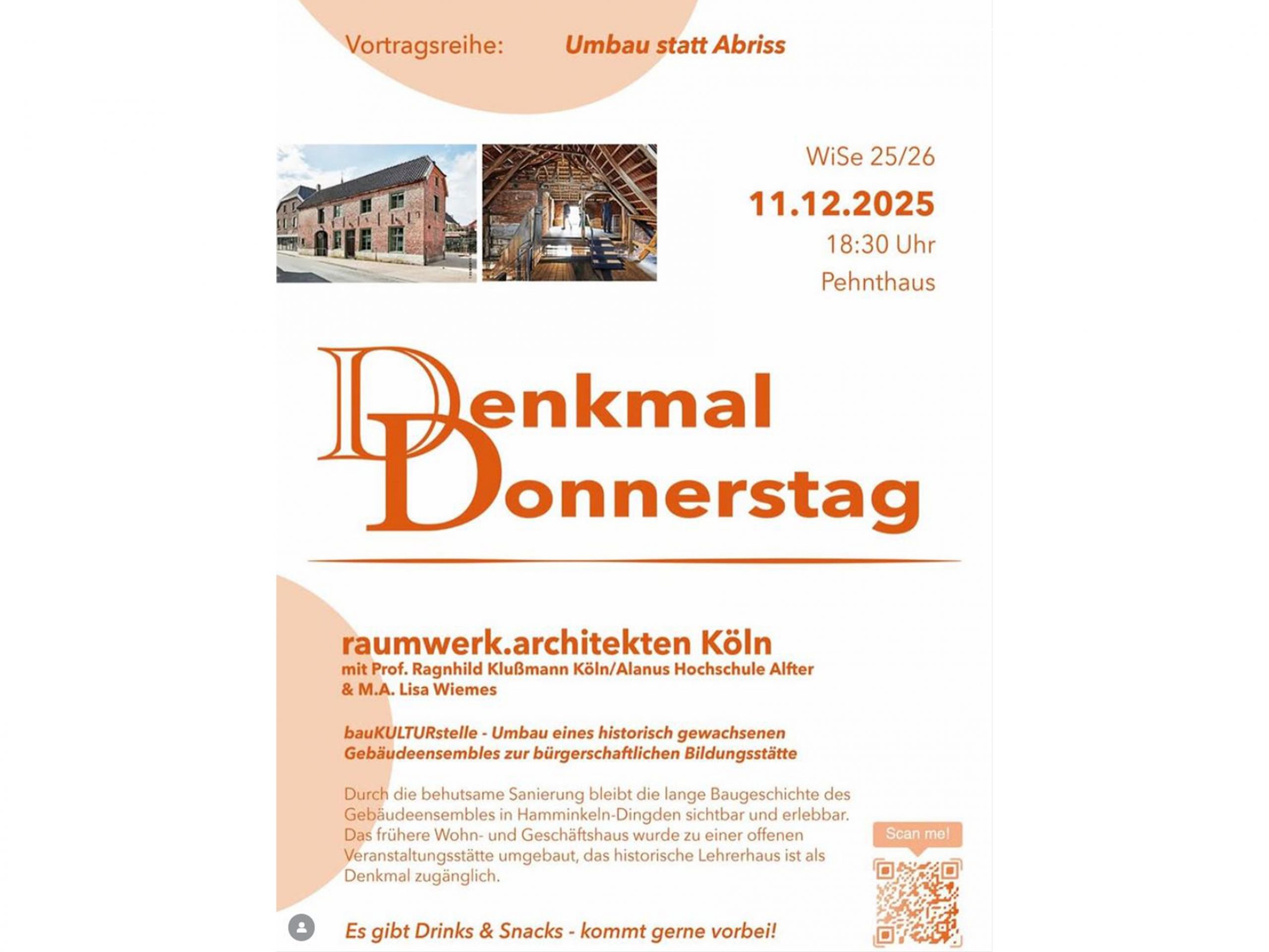 Wir freuen uns im Rahmen der Vortragsreihe Denkmal Donnerstag „Umbau statt Abriss“ organisiert von Studierenden der TH Köln unser Projekt bauKULTURstelle – Umbau eines historisch gewachsenen Gebäudeensembles zur bürgerschaftlichen Bildungsstätte vorstellen und gemeinsam diskutieren zu dürfen.