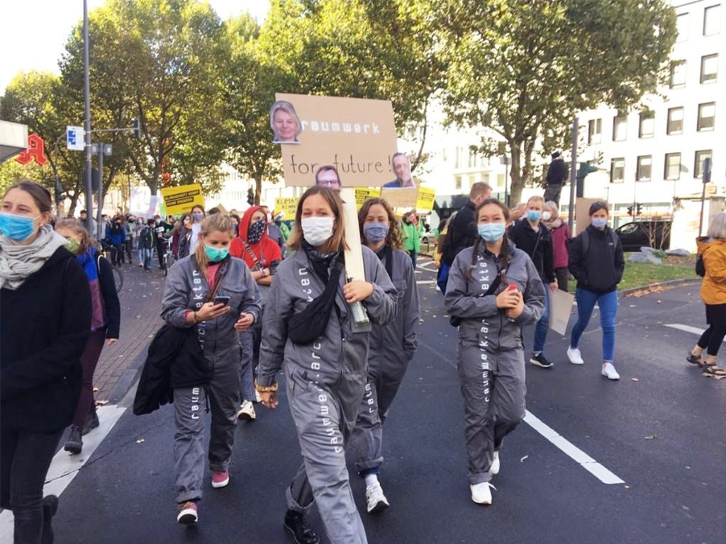 4 (nehmen wir es ganz genau 6) raumwerker inmitten der Fridays for Future Demonstration gesichtet